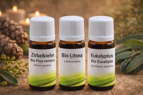 Eukalyptus aus Portugal, Zirbelkiefer aus Südtirol und Litsea aus Vietnam – drei Bio-Öle mit Herkunft und Charakter, für alle, die Qualität und Authentizität schätzen.