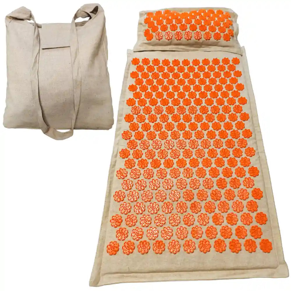 Viworo Akupressurmatten-Set mit Matte, Kissen und Leinentasche.