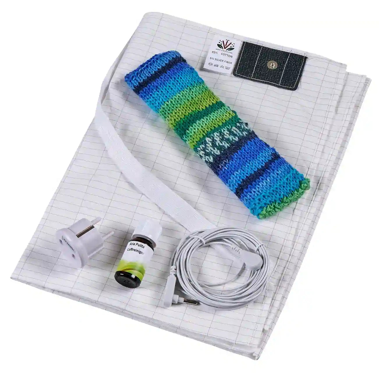 • ✔️ 1 × Lenzuolo con argento per messa a terra (200 × 90 cm) in 95% cotone delicato sulla pelle e 5% fibra d'argento conduttiva