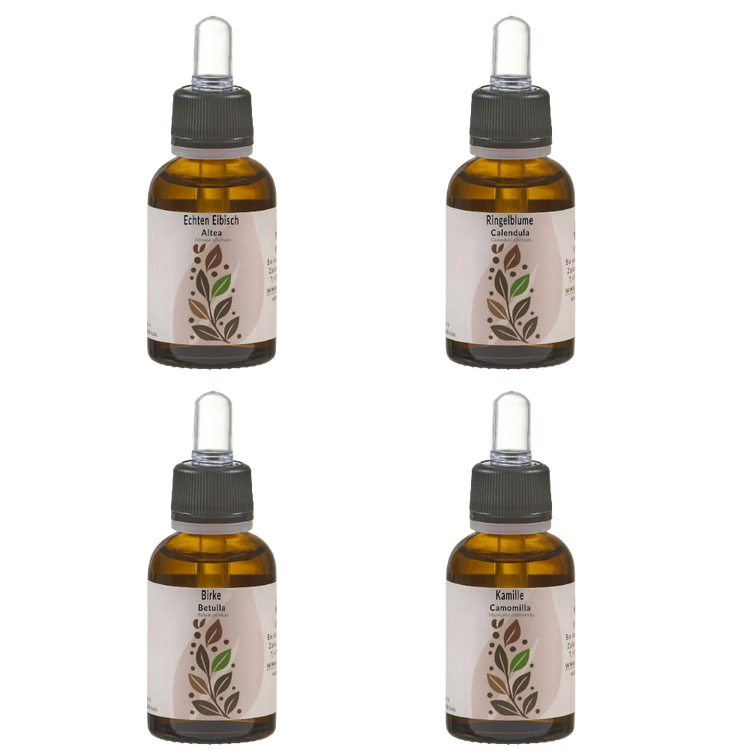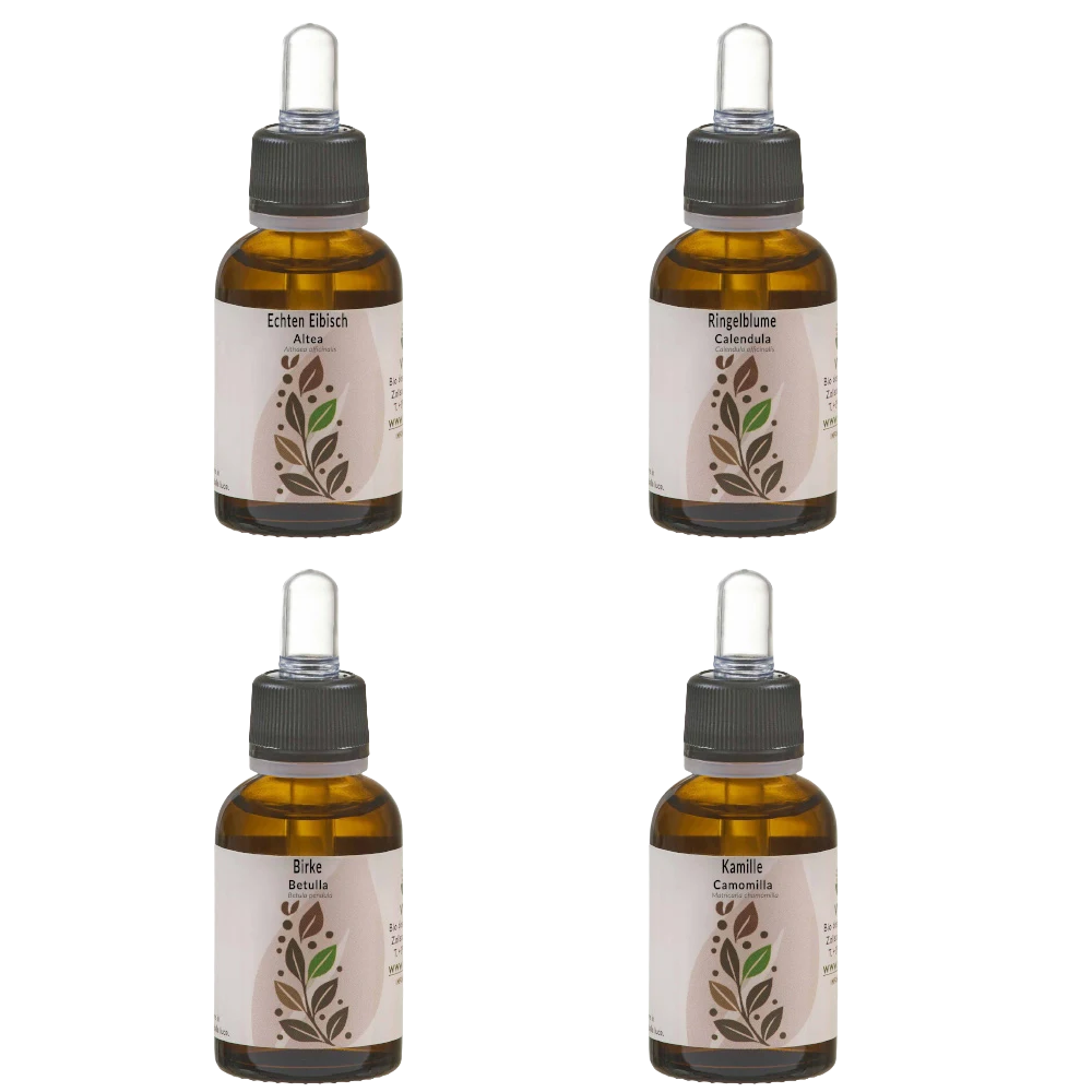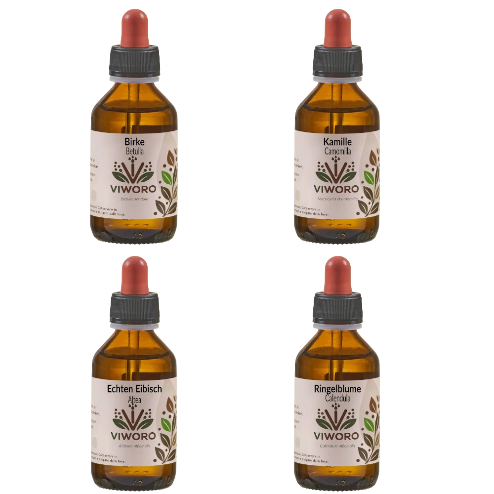 - Contenuto: 4x Estratti fluidi idroalcolici (Altea, Camomilla, Betulla, Calendula).